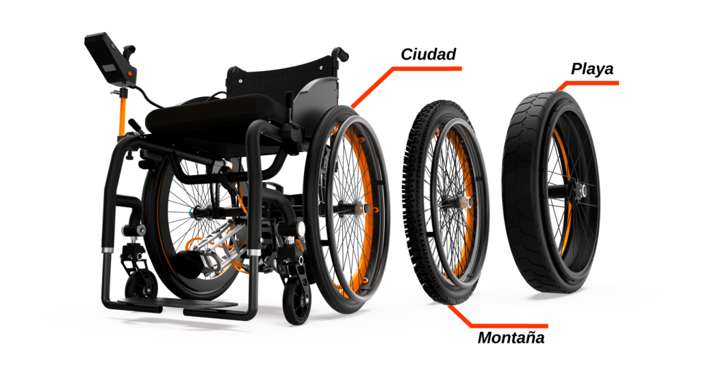 De aquí que nuestro kit ofrezca una mejora sustancial, dado qué, está compuesto de unos aros a los que le puedes intercambiar las ruedas, en función del pavimento en el que te encuentres, ya puede ser ciudad, playa o montaña.
